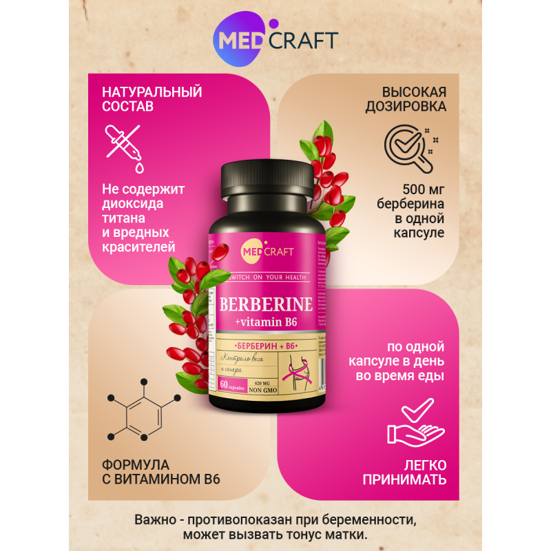 Берберин МедКрафт, мощный натуральный продукт, который поддержит ваше здоровье и поможет наладить обмен веществ.