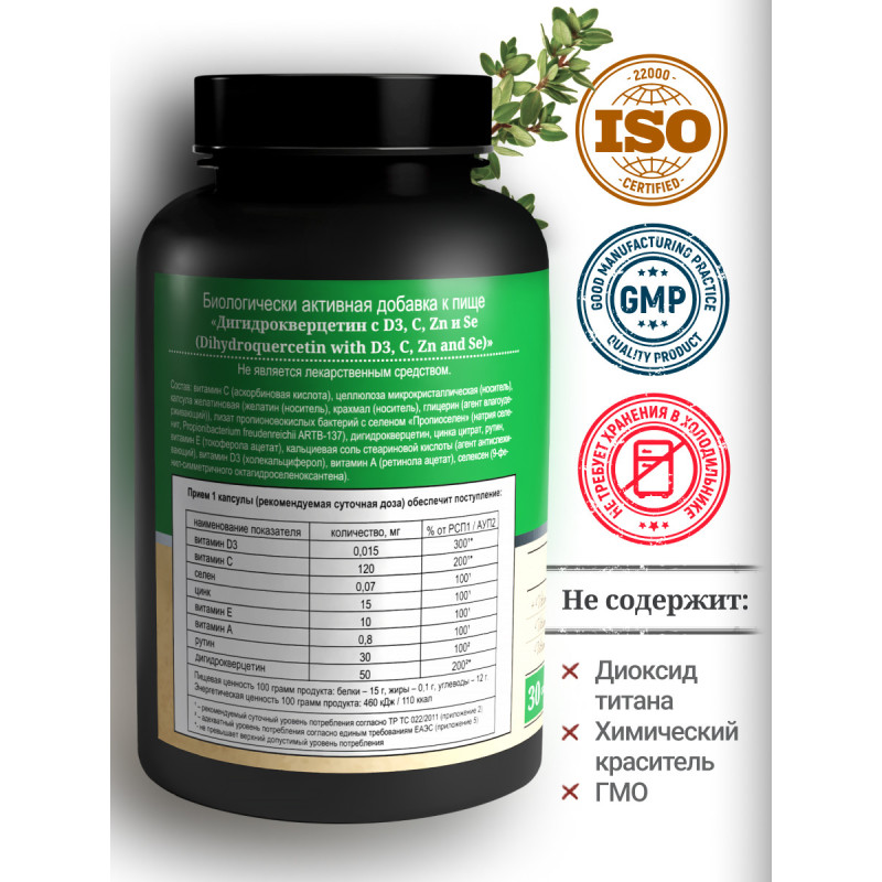 Дигидрокверцетин, - 50 мг.