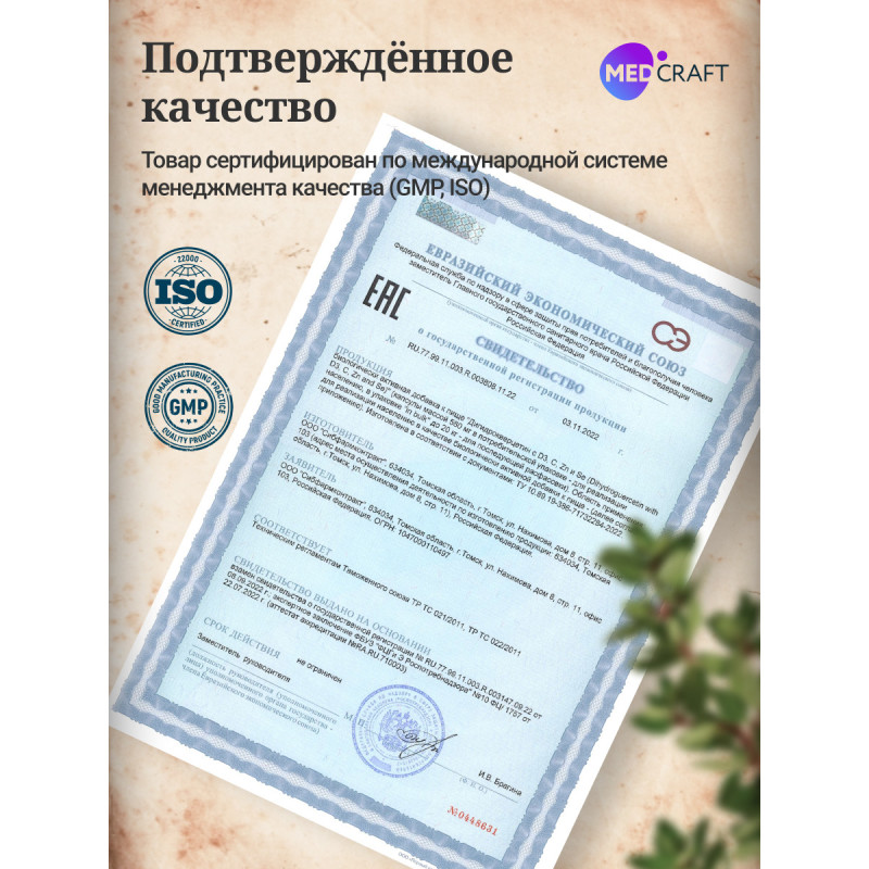 - Цинк — способствует нормальному функционированию иммунной системы. Он участвует в более чем 300 биохимических реакциях в организме и необходим для синтеза белков, заживления ран и деления клеток. Цинк также обладает антиоксидантными свойствами, помогая защищать клетки от повреждений.