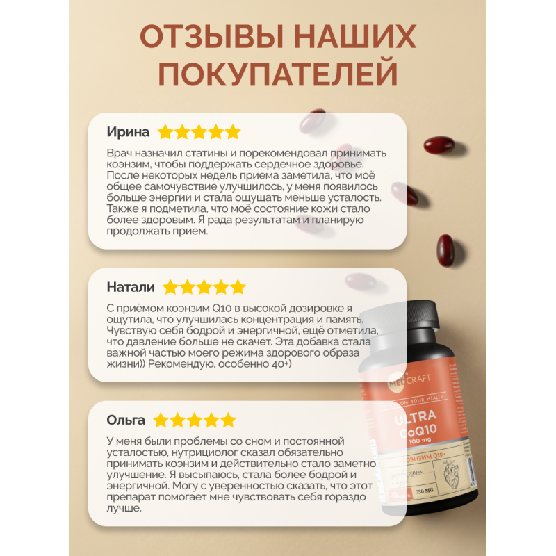 Новинка компании медкрафт, ultra coenzyme q10 в форме софт-гель — это уникальный продукт, который содержит в себе мощный активный ингредиент — коэнзим q10.