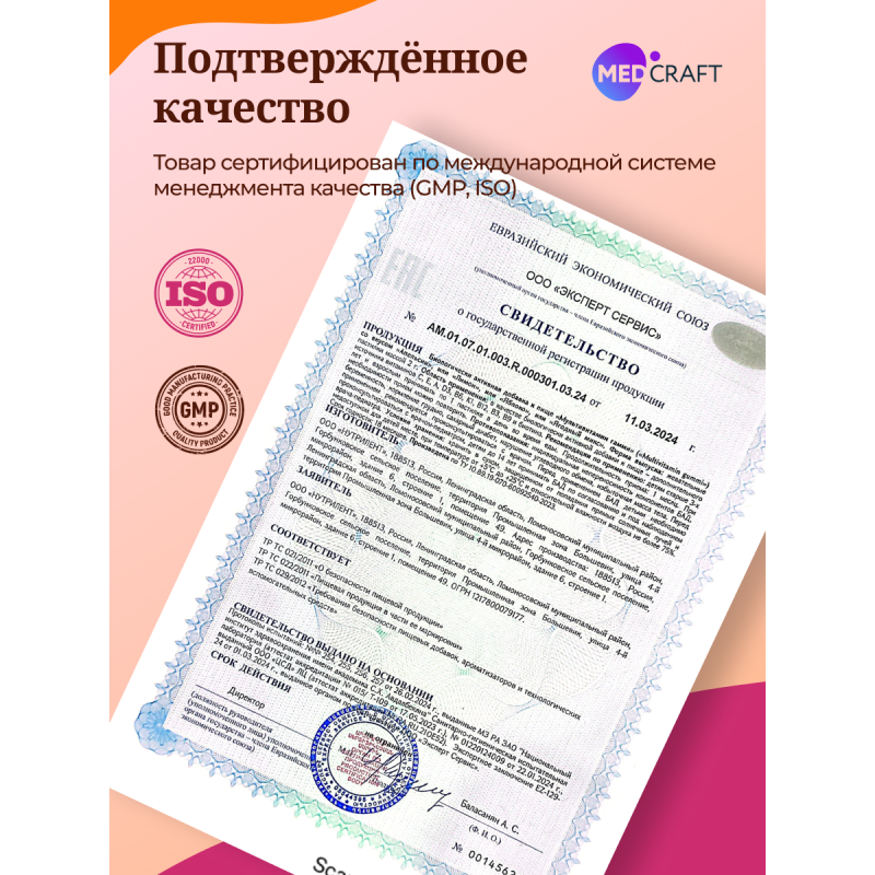 | Основные компоненты: Витамин C, - 42,42 мг; Витамин Е, - 8,20 мг; Витамин B3, - 10,00; Витамин A, - 690,00 мкг; Витамин D3, - 15,00 мкг; Витамин B6, - 1,10 мг; Витамин К1, - 42,00 мкг; Витамин B9, - 140,00 мкг; Биотин, - 29,80 мкг; Витамин B12, - 0,12 мкг. Полный перечень компонентов смотрите во вкладке «состав». Представляем вашему вниманию полезные и вкусные витамины, - комплекс в форме жевательных витамишек, разработанные специально для детей возраста от 3 лет. Этот детский комплекс – идеальное решение для родителей, которые заботятся о здоровье и развитии своих детей. Благодаря продуманному составу, они обеспечивают вашему ребенку необходимую суточную норму витаминов, закрывая возможные дефициты. как помогает организму? - Vitamin C поддерживает иммунную систему, помогая организму бороться с инфекциями и простудами, участвует в производстве коллагена, который необходим для здоровья кожи, костей и суставов, способствует быстрому заживлению ран и синяков, помогает организму усваивать железо из пищи, предотвращая анемию. - Vitamin E, - мощный антиоксидант, защищающий клетки от окислительного стресса и повреждений. Улучшает состояние волос, придавая им блеск и силу, способствует нормальному функционированию иммунной системы. - Vitamin A важен для поддержания зрения, иммунитета и здоровья кожи у детей, его также часто называют витамин для роста. - K1 необходим для поддержания нормального свертывания крови и формирования костей. - B3 (ниацин) улучшает кровообращение, поддерживает здоровье нервной системы и помогает снижать уровень холестерина. - B6 (пиридоксин) необходим для нормального функционирования нервной системы, способствует синтезу нейротрансмиттеров и улучшению когнитивных функций. - B12 (кобаламин) участвует в процессе кроветворения, поддерживает здоровье нервной системы и помогает предотвратить анемию. кому будет полезно? - детям длдя поддержания иммунитета - при простудах - при повышенной утомляемости - детям для здоровья нервной системы Биологически активная добавка. Не является лекарственным средством. Перед применением следует проконсультироваться со специалистом." |