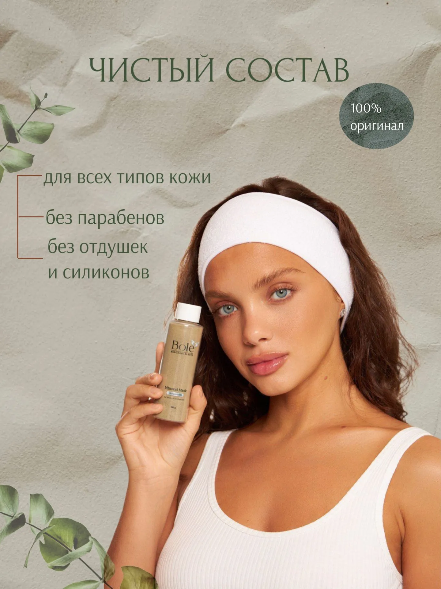 Минеральная маска для лица bole очищающая с глауконитом - Натуральный состав, 150 мл