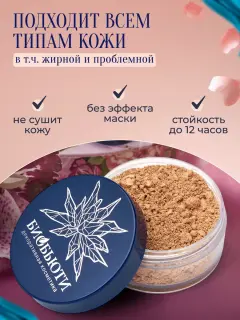 Формула пудры разработана с учетом потребностей кожи, она легко наносится и равномерно распределяется, создавая невесомое покрытие. Благодаря своим матирующим свойствам, пудра позволяет скрыть несовершенства и даёт возможность добиться естественного финиша. Легкая текстура не забивает поры и позволяет коже дышать, что особенно важно для тех, кто стремится сохранить здоровье своей кожи.
