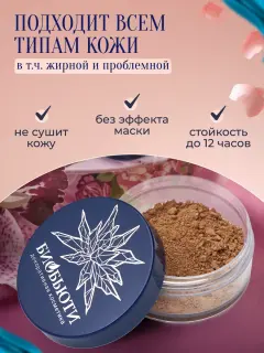 Формула пудры разработана с учетом потребностей кожи, она легко наносится и равномерно распределяется, создавая невесомое покрытие. Благодаря своим матирующим свойствам, пудра позволяет скрыть несовершенства и даёт возможность добиться естественного финиша. Легкая текстура не забивает поры и позволяет коже дышать, что особенно важно для тех, кто стремится сохранить здоровье своей кожи.