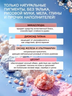 Обладают высокой стойкостью, поэтому румяна не будут осыпаться и смазываться.