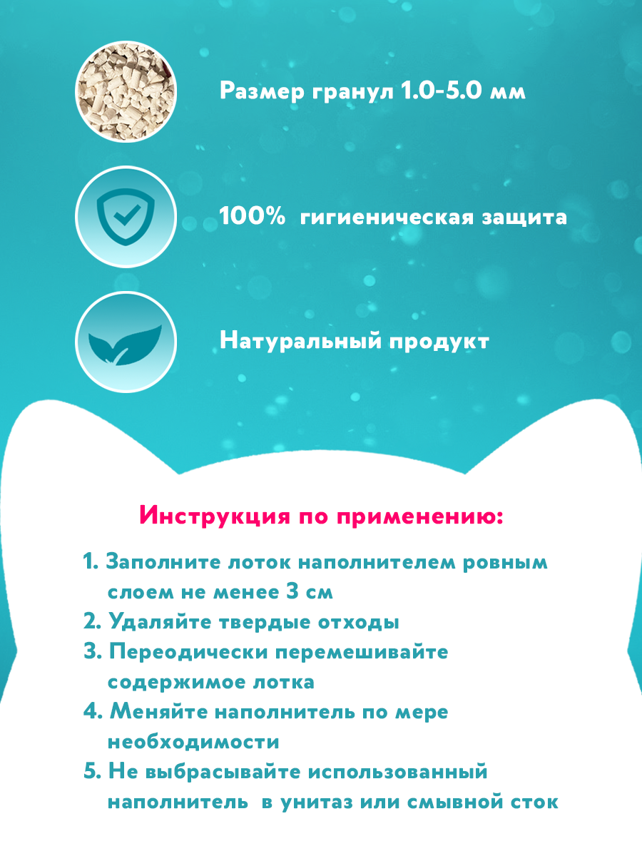 Lucky CatS - это экономичный расход!!! Одной упаковки 4.0 кг или 6 литров хватает, в среднем, на один месяц! Впитываемость данного объёма составляет более 10 литров, что указано на лицевой стороне упаковки. Полностью менять лоток придется только один раз. Удалять необходимо лишь твердые отходы, остальное всего лишь перемешивать.