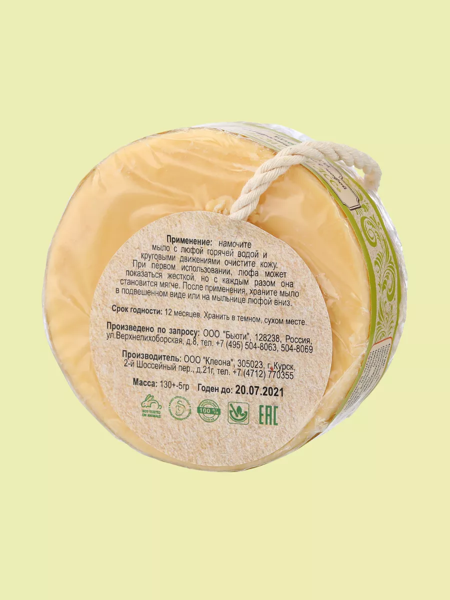 люфой делает кожу более упругой и помогает улучшить её состояние в проблемных местах. Композиция эфирных масел шалфея, эвкалипта и пачули дает оздоровительный эффект и заряжает бодростью. Мыло на веревке удобно использовать в душе или бане, а также брать с собой в путешествия. Экономично в использовании. Подходит для всей семьи. Для всех типов кожи. Люфа при первом использовании, может показаться жестковатой, но с каждым разом она становится мягче. Срок хранения 12 месяцев