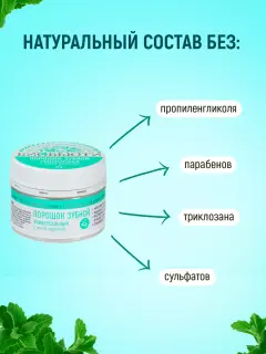 Зубной порошок «Универсальный» с мятой тщательно очищает зубы от налета, устраняет зубной камень и уничтожает бактерии в полости рта.