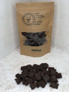 100гр. Состав: Мясо говяжье 60% /Сердце говяжья/Яблоко/Морковь