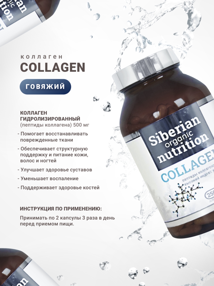 Состав: коллаген гидролизированный (пептиды коллагена) 500 мг, растительная капсула