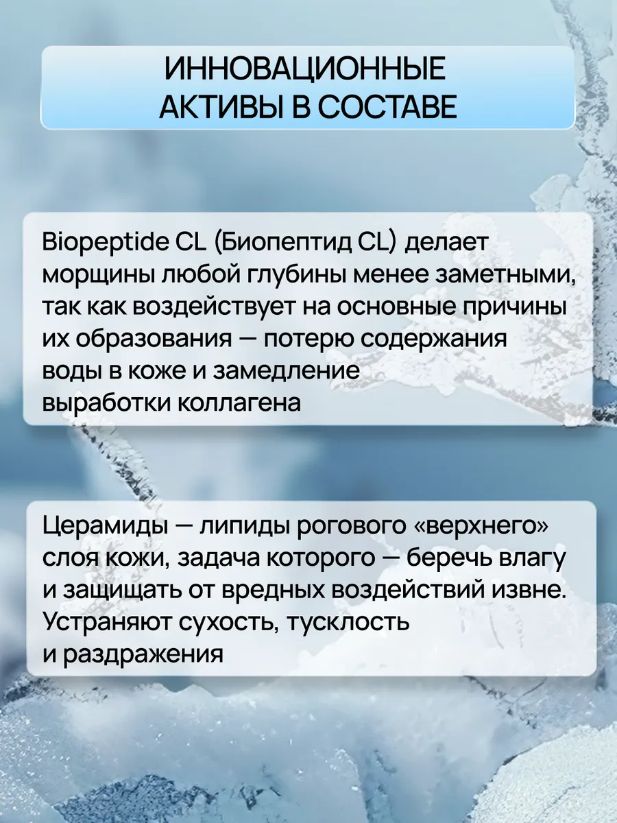 «Интенсивное питание» - это легкий питательный крем на гелевой основе с церамидами и биопептидом CL для любого типа кожи. Рекомендован с 25 лет. Инновационное средство в составе - Biopeptide CL (Биопептид CL) делает морщины любой глубины менее заметными, так как воздействует на основные причины их образования – потерю содержания воды в коже и замедление выработки коллагена. Биопептид CL (Biopeptide CL) - фрагмент коллагеновой цепи, дающей омолаживающий эффект. Защищает поверхность кожи от негативного внешнего воздействия; разглаживает морщины и придает плотности кожным покровам;