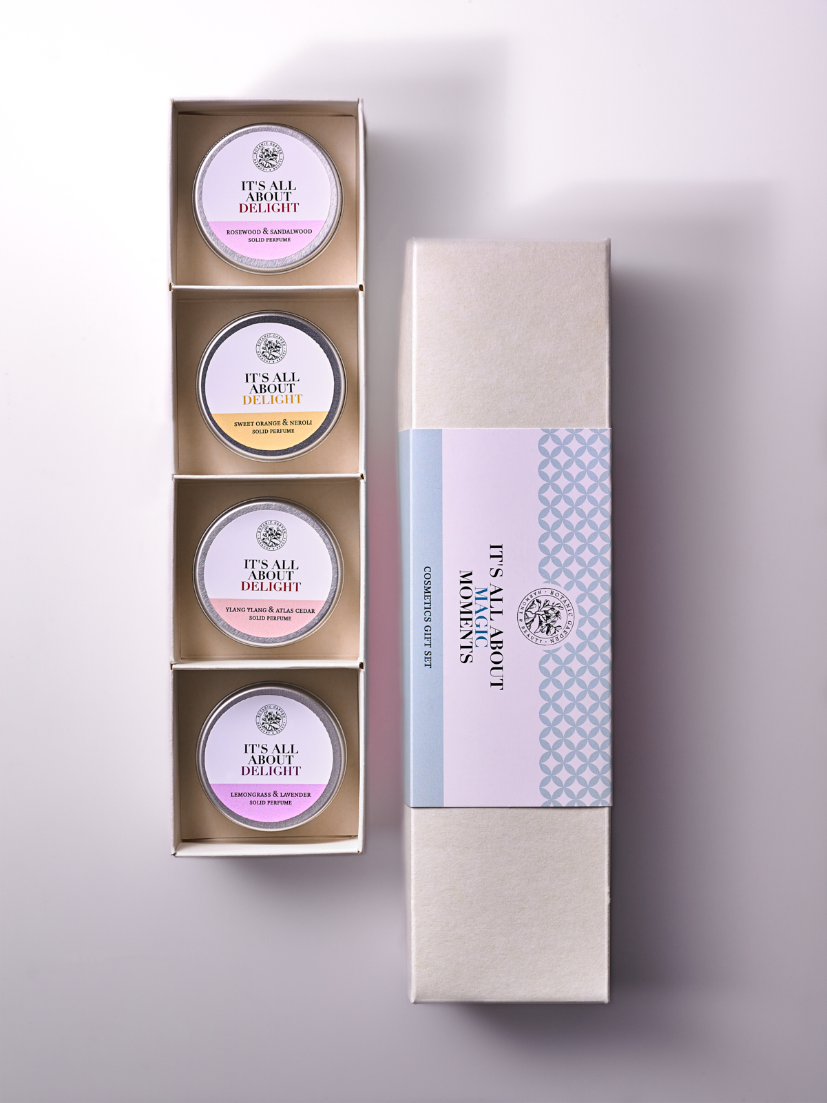 Состав: Твердые духи для тела » Розовое дерево & Сандал» 30 мл, Твердые духи для тела «Сладкий апельсин & Нероли» 30 мл, Твердые духи для тела «Иланг-Иланг & Кедр атласский» 30 мл, Твердые духи для тела «Лемонграсс & Лаванда» 30 мл.