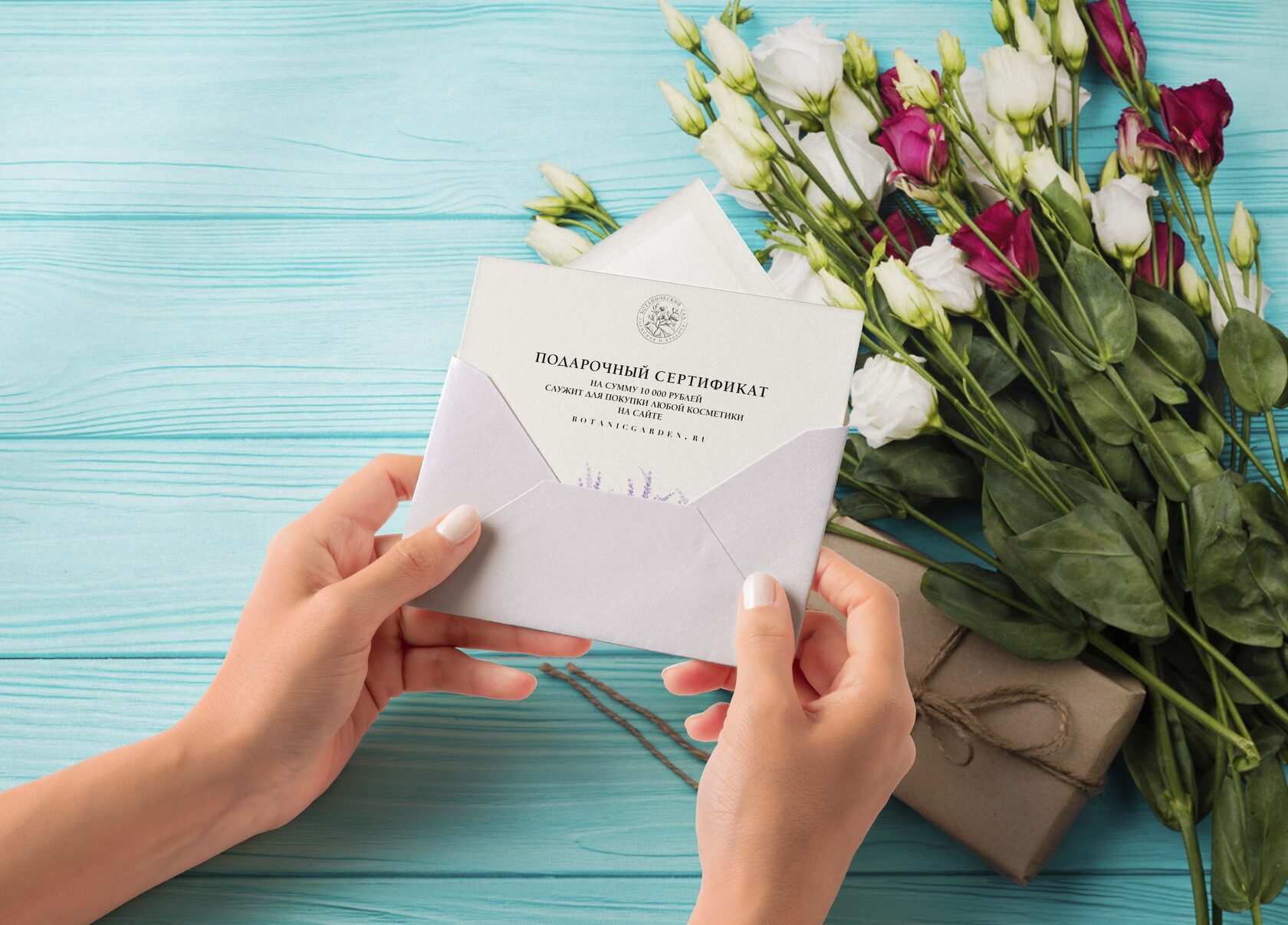 Подарочный сертификат от Ботанического сада позволит вашим близким самостоятельно выбрать натуральную косметику.