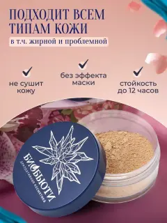 Пудра для лица матирующая рассыпчатая минеральная — это отличный выбор для создания безупречного макияжа, который подчеркнёт вашу естественную красоту. Этот продукт предназначен для всех, кто ценит качественную косметику. Придаёт коже свежесть, помогает контролировать жирный блеск на протяжении всего дня.