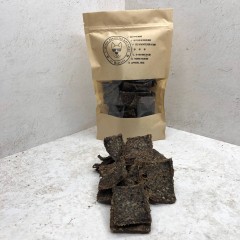 Он отлично усваивается, позволяя животному чувствовать себя здоровым и бодрым. Благодаря неочищенному рубцу, у собаки проявляется хороший мягкий стул, нет проблем с употреблением кала на улице, что довольно часто замечается у собак. У многих собак на подростковом этапе начинают резаться зубки, именно для этого случая необходимо подобрать такое лакомство. Которое не только не повредят зубам собаки, но и позволят укрепить их ещё больше. Удобно хранить и брать с собой. Благодаря крафт-пакету с зип замком.