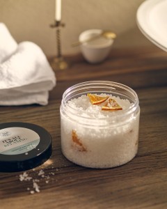 средиземноморская морская соль -- уникальный источник железа, калия, магния, кальция, меди, йода и тд Они полностью усваиваются организмом на клеточном уровне. Регулярные ванны с морской солью обеспечивают организм всеми необходимыми минералами и микроэлементами. Цитрусовые эфирные масла в составе, не только помогают бороться с целлюлитом, делая кожу упругой и гладкой, но и поднимают настроение, рассеивают мрачные мысли.
