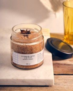Ароматный скраб со специями помогает согреться, преодолеть уныние и апатию в осенне‑зимний период года, бодрит при усталости, стимулирует кровообращение, насыщает кожу ценными витаминами и микроэлементами. Комплекс эфирных масел и специй усиливает кровообращение, поднимает защитные функции кожи, помогает противодействовать увяданию кожи.