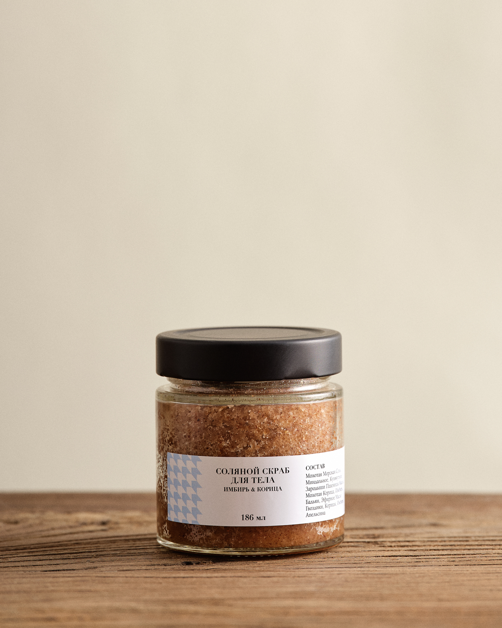 Состав: молотая морская соль, миндальное масло, кунжутное, зародышей пшеницы масло, молотая корица, имбирь, бадьян, эфирное масло гвоздики, корицы, имбиря, апельсина.