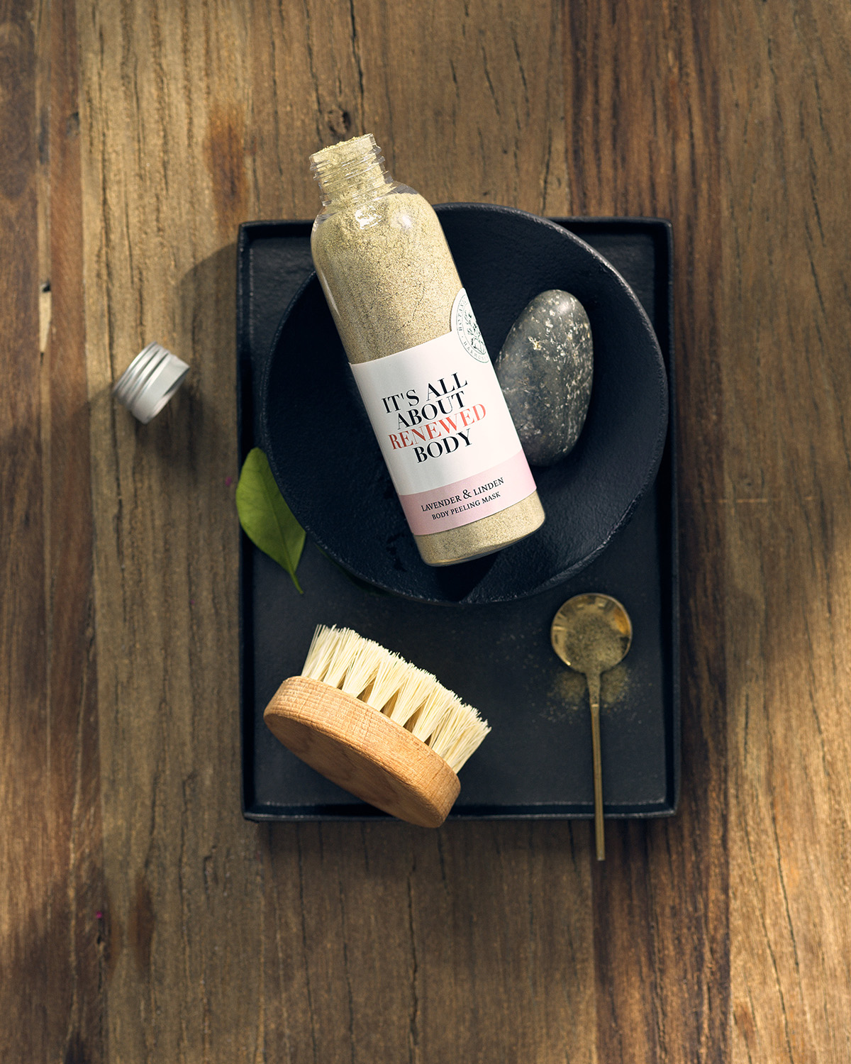 Цветы лаванды обладают совокупностью свойств, сходных с эфирным маслом: очищают, дезодорируют и освежают кожу, лаванда также оказывает антисептическое, тонизирующее действие. Цветы и листья липы содержат большое количество мононенасыщенных кислот, которые снимают раздражение, борются с пигментными пятнами. Душица великолепно смягчает и увлажняет кожу, оказывает кондиционирующее действие, молотые зерна кукурузы мягко отшелушивают верхний ороговевший слой и выравнивают рельеф кожи. Сухое цельное молоко питает, отбеливает, и в буквальном смысле «кормит» кожу всеми своими полезными компонентами. Подходит для сухой кожи.