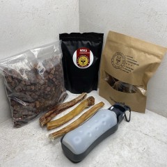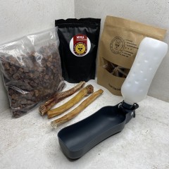 Поилка для воды на 500мл Корень бычий 3шт (15-17см) Уши говяжьи 2шт Аминокислотная Мука 0,5 кг Лёгкое говяжье кусочки 300гр