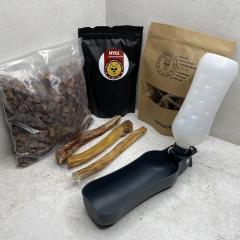 Поилка для воды на 500мл Корень бычий 3шт (15-17см) Уши говяжьи 2шт Аминокислотная Мука 0,5 кг Лёгкое говяжье кусочки 300гр