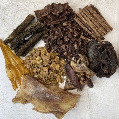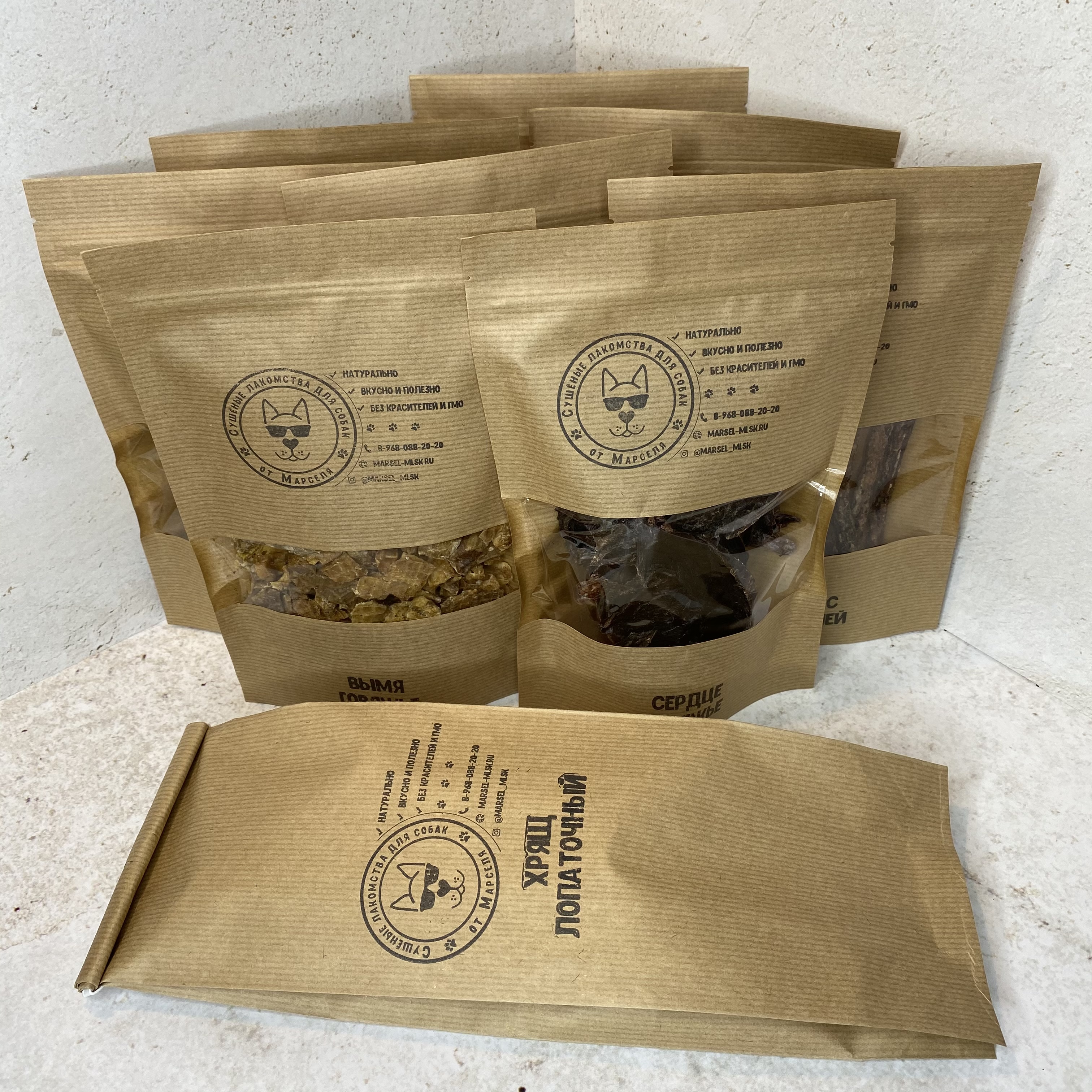 Шеи утиные 2шт Хрящ лопаточный 2шт Оленина с крапивой 100гр Легкое говяжье колбаски 100гр Рубец говяжий 100гр Семенники быка 100гр Вымя кусочки 100гр Губы (Чипсы из носа) 2шт