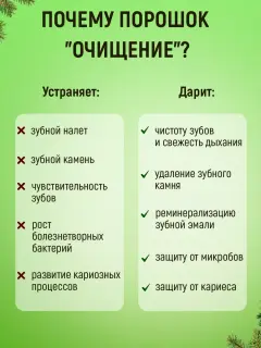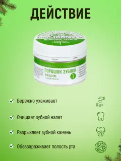 При использовании порошка зубы становятся крепкими, здоровыми, снижается их чувствительность, освежается дыхание.